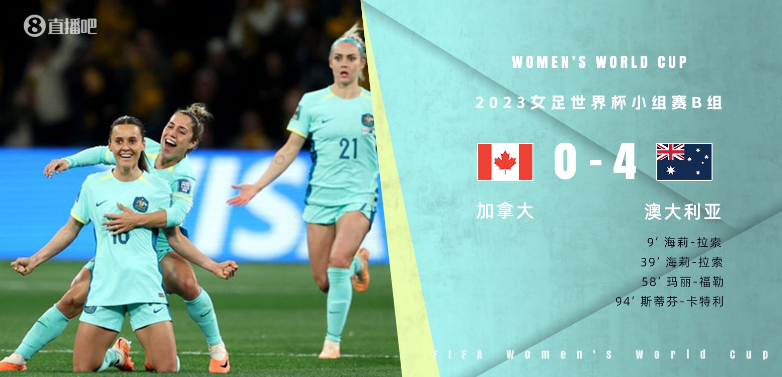 女足世界杯-澳大利亚4-0加拿大头名出线 将战中国女足所在D组次名