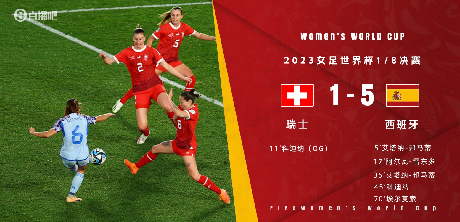 女足世界杯-西班牙5-1大胜瑞士 队史首次晋级世界杯八强