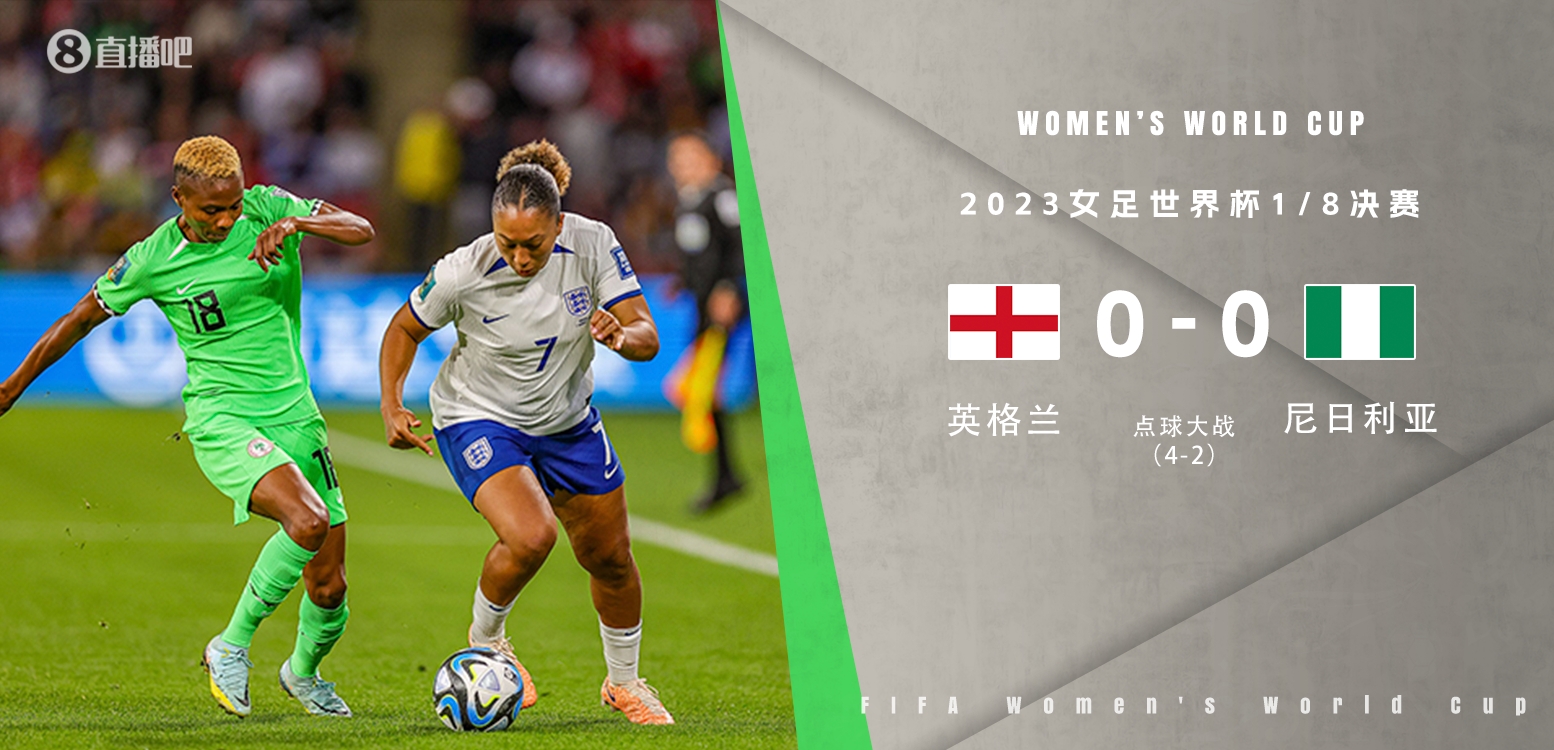 直播吧8月7日讯 北京时间8月7日15:30,2023年女足世界杯1/8决赛,英格兰女足对阵尼日利亚女足。上半场,普伦普特里劲射击中横梁,双方门将均做出精彩扑救,主裁判罚英格兰点球后取消;下半场,卡努头球击中横梁...发表于:08月07日