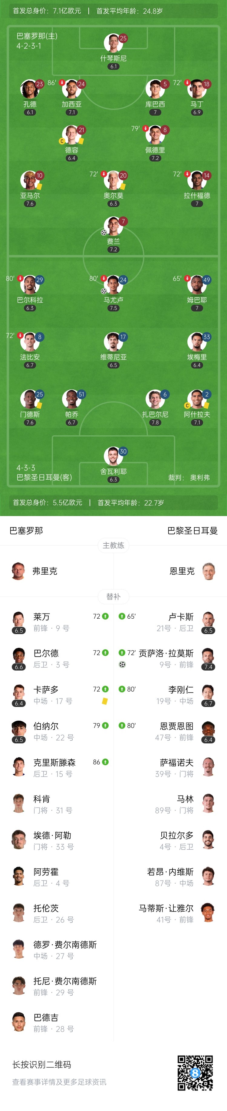 第62分钟,巴萨前场位置极佳的定位球机会,亚马尔主罚打飞↓