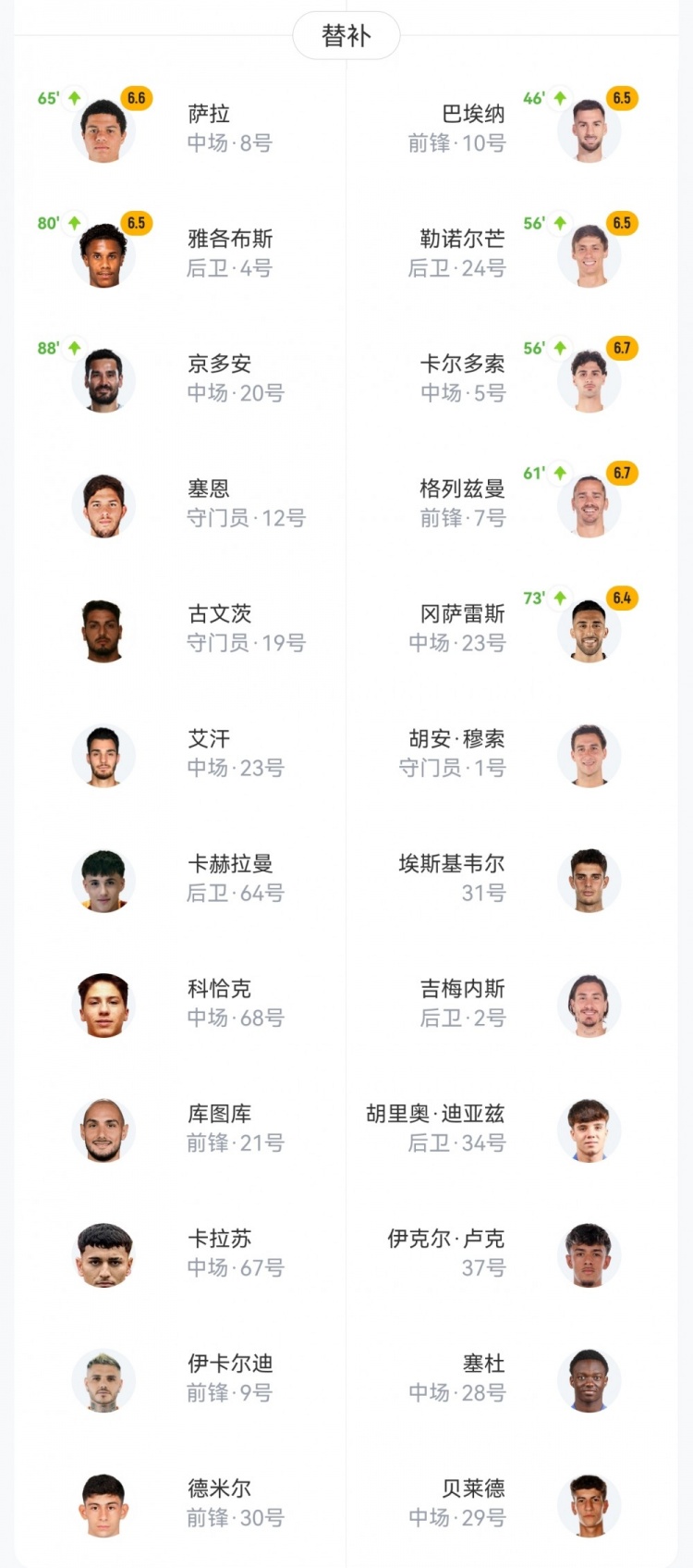 【双方首发及换人信息】