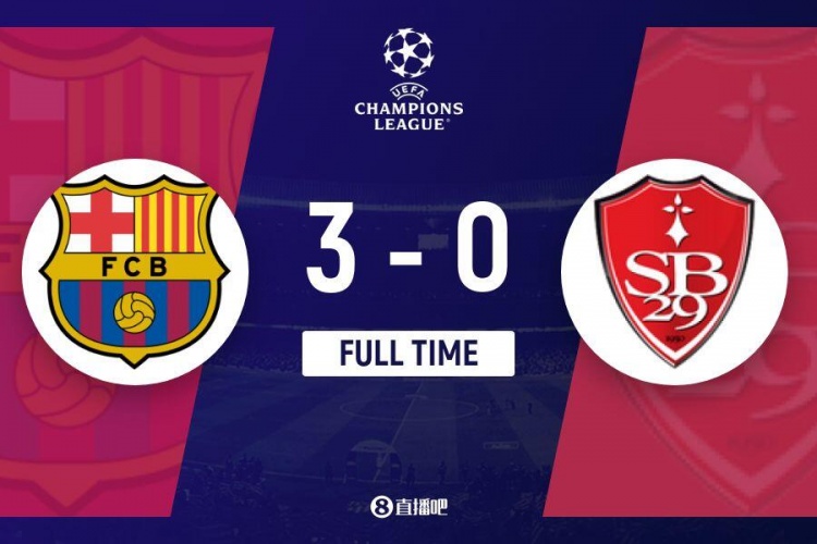 欧冠-巴萨3-0布雷斯特欧冠四连胜 莱万双响+欧冠百球奥尔莫破门