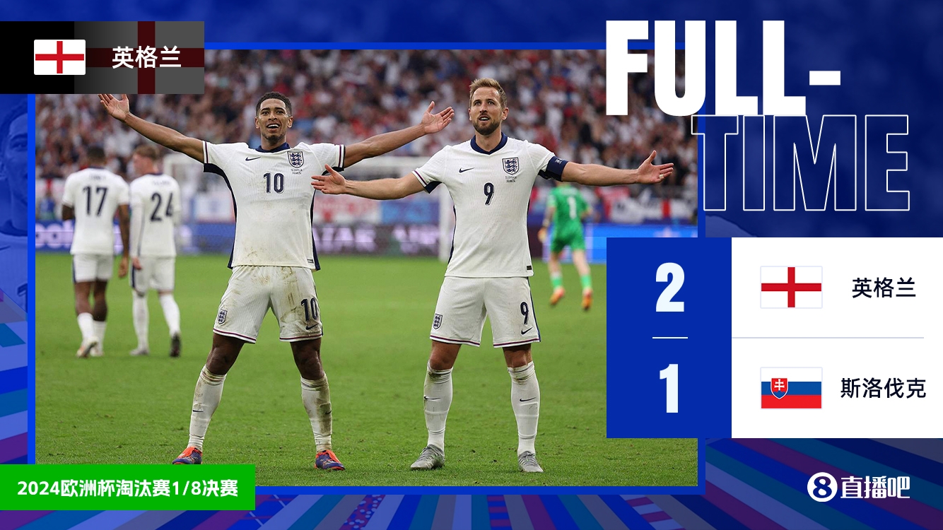7月1日讯 欧洲杯1/8决赛的第3场比赛,英格兰对阵斯洛伐克,本场比赛将在费尔廷斯竞技场打响;上半场,斯特雷莱茨助攻施兰茨单刀破门,英格兰3人染黄,上半场比赛结束,英格兰0-1落后斯洛伐克;下半场,福登中路包抄扳平比分被吹越位,贝林厄姆伤停补时阶段扳平比分,最终90分钟比赛结束,英格兰1-1斯洛伐克;加时赛一开场,伊万托尼头球助攻凯恩头槌闪电反超比分,最终全场比赛结束,英格兰2-1淘汰斯洛伐克,晋级8强。
