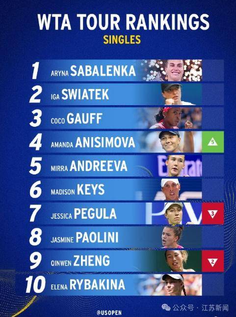 此前,随着美国网球公开赛落幕,2025赛季四大满贯赛事全部结束。WTA官方随后更新了最新一期世界排名,白俄罗斯名将萨巴伦卡凭借美网冠军的出色表现,以11,225分的绝对优势继续领跑积分榜。值得注意的是,中国选手郑钦文因伤缺席美网,排名下滑2位至第九,积分(4,003分)与第八位的保利尼(4,006分)仅差3分,未来仍有望重返前八。