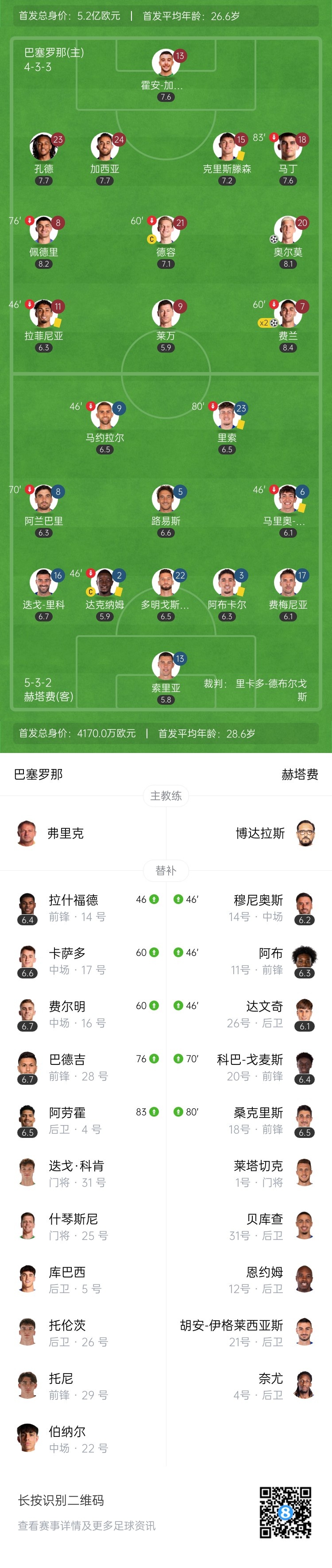 5轮不败!巴萨3-0赫塔费 费兰双响奥尔莫传射 拉什福德替补献助攻
