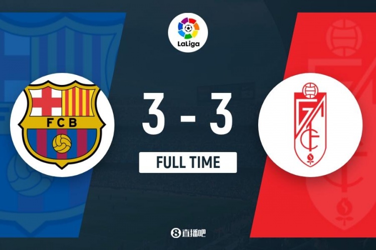 下半场补时8分钟。最终全场比赛结束,巴萨3-3格拉纳达。