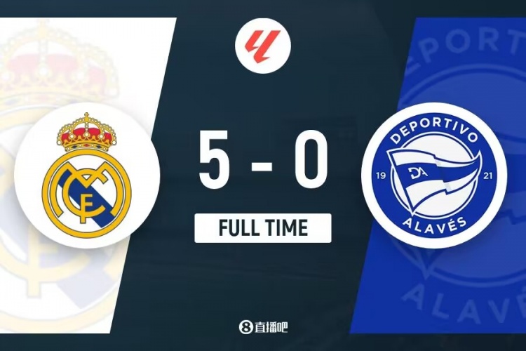 下半场补时2分钟。最终全场比赛结束,皇马5-0阿拉维斯。