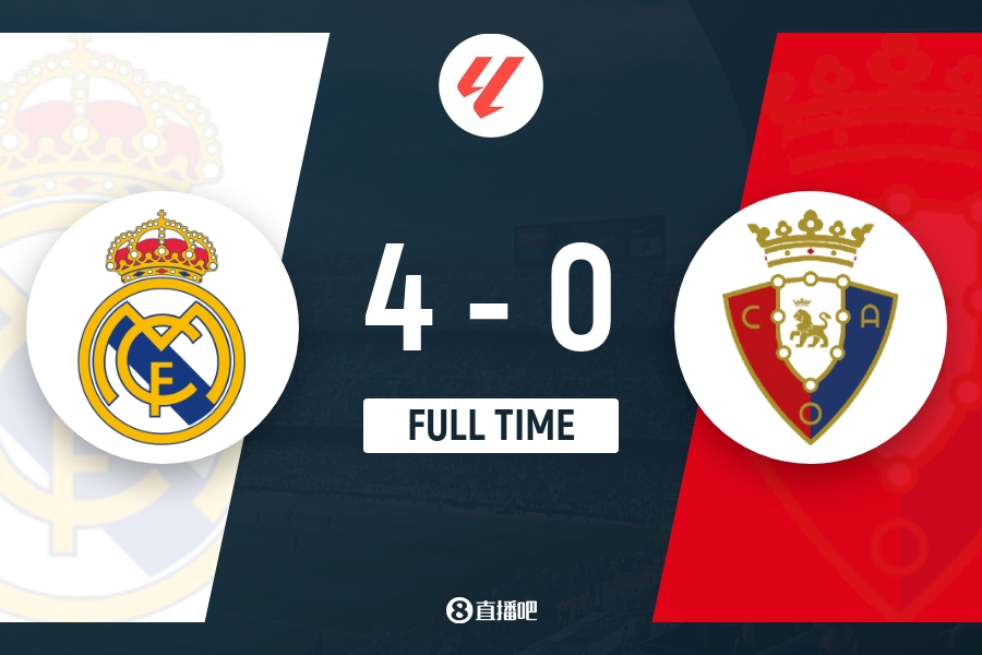 下半场伤停补时3分钟,全场比赛结束,最终皇马4-0奥萨苏纳。