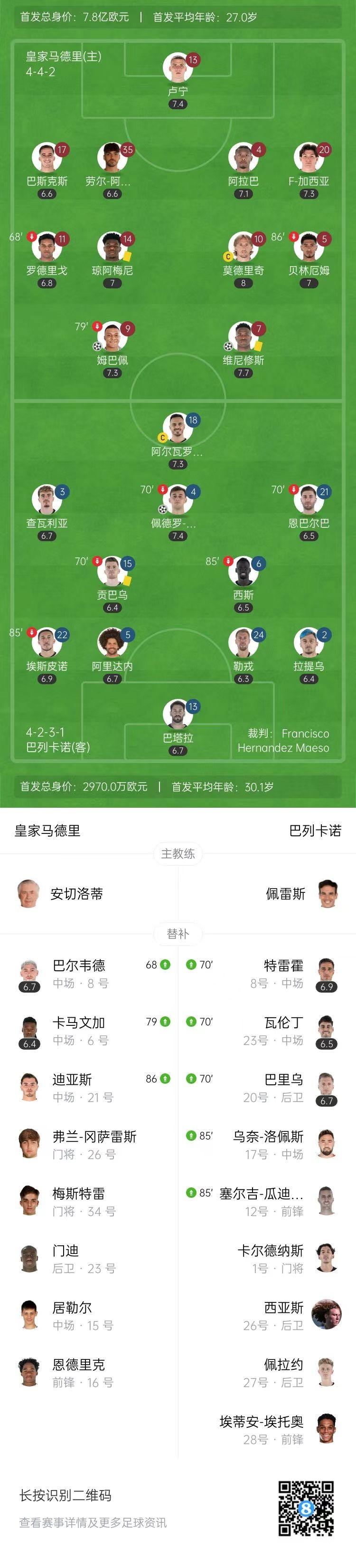 多赛平榜首!皇马2-1巴列卡诺升第二 维尼修斯破门+中柱姆总建功