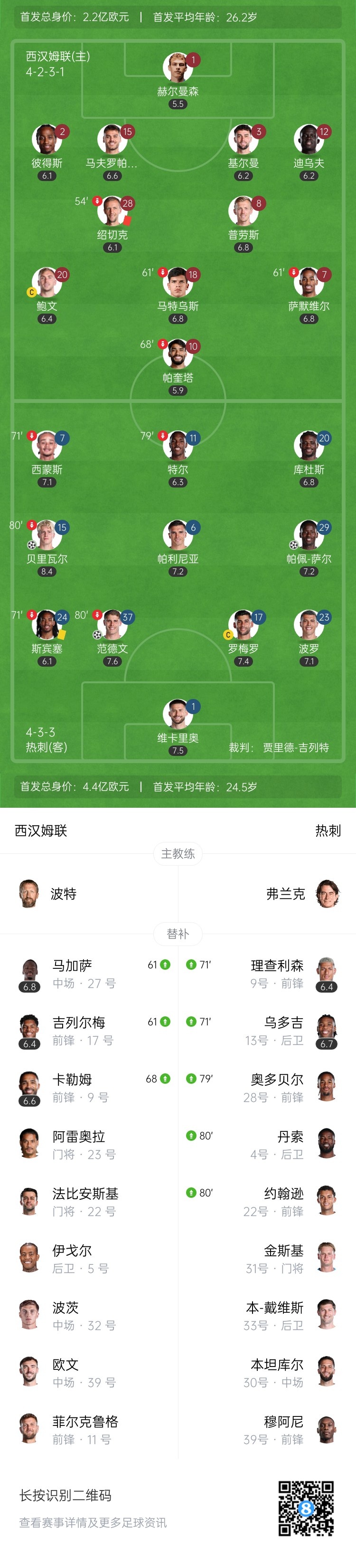 热刺3-0十人西汉姆联 贝里瓦尔传射绍切克染红 铁锤帮4轮狂丢11球