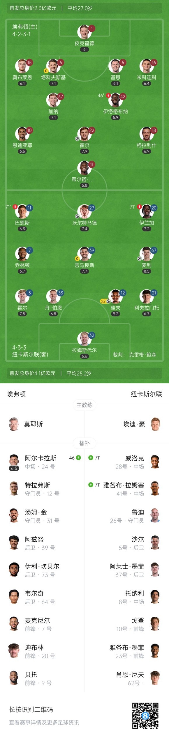 下半场补时5分钟,埃弗顿1-4纽卡。
