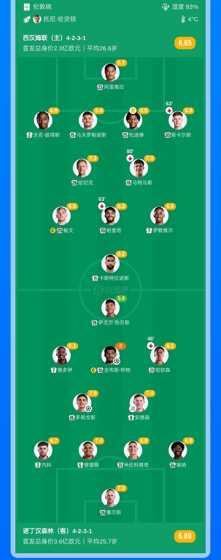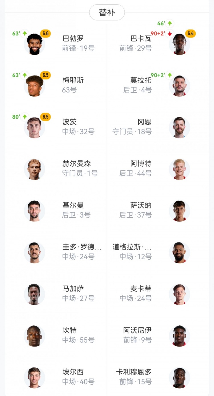 【双方首发及换人信息】
