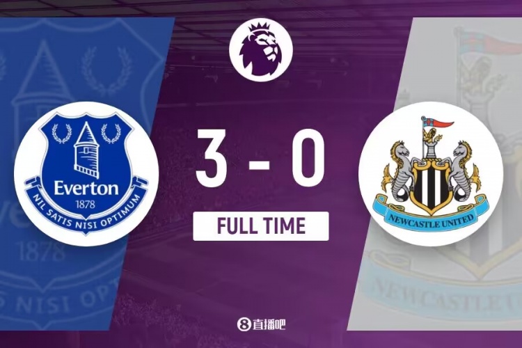 全场比赛结束,纽卡0-3埃弗顿。