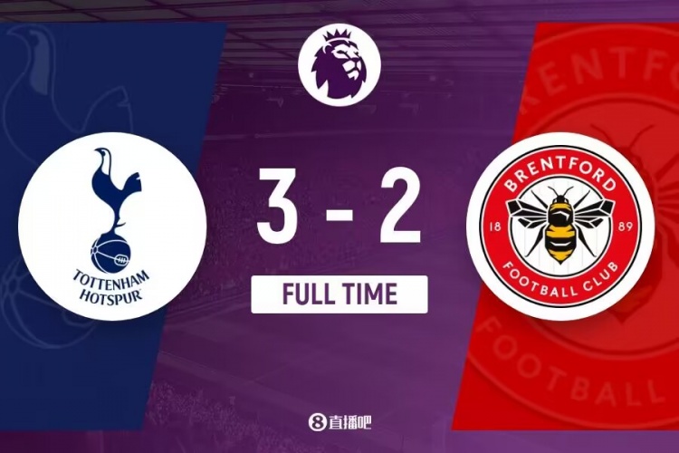 最终,热刺3-2布伦特福德。