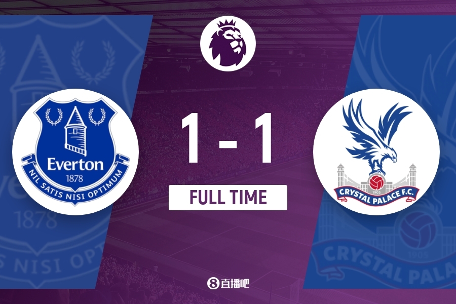 最终全场比赛结束,埃弗顿1-1绝平水晶宫。
