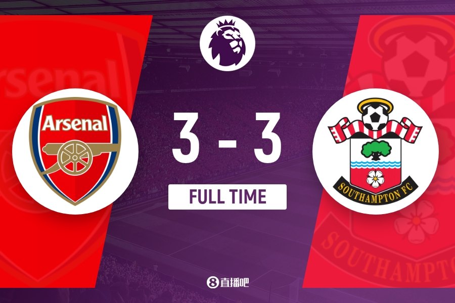 最终,阿森纳3-3南安普顿。