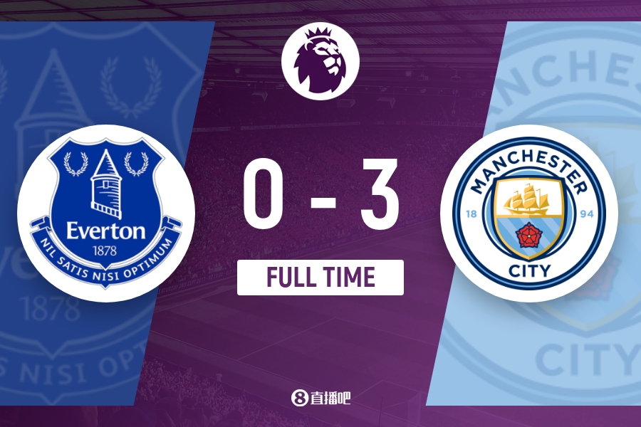 下半场伤停补时4分钟,全场比赛结束,最终曼城3-0埃弗顿。