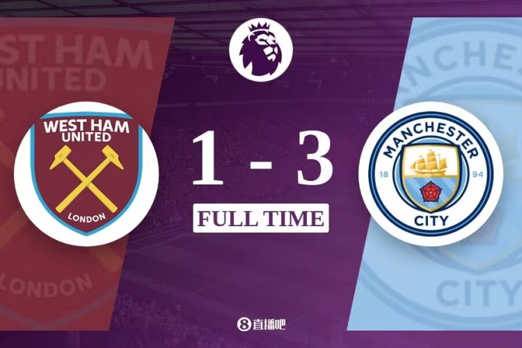 最终西汉姆1-3曼城。