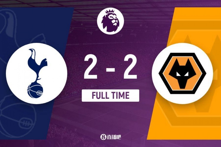 全场比赛结束,热刺2-2战平狼队。