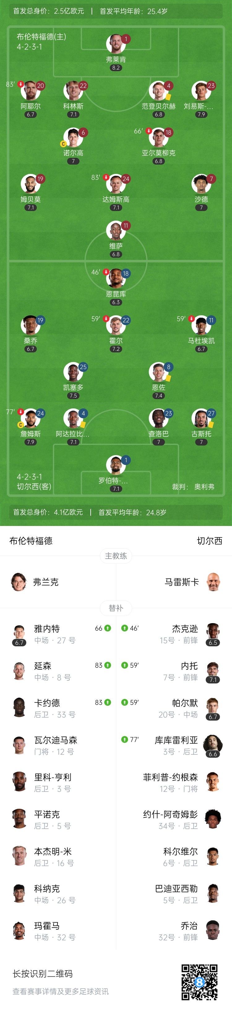第79分钟,布伦特福德犀利反击,姆贝莫与维萨配合后禁区内左脚爆射被罗伯特-桑切斯扑出。↓