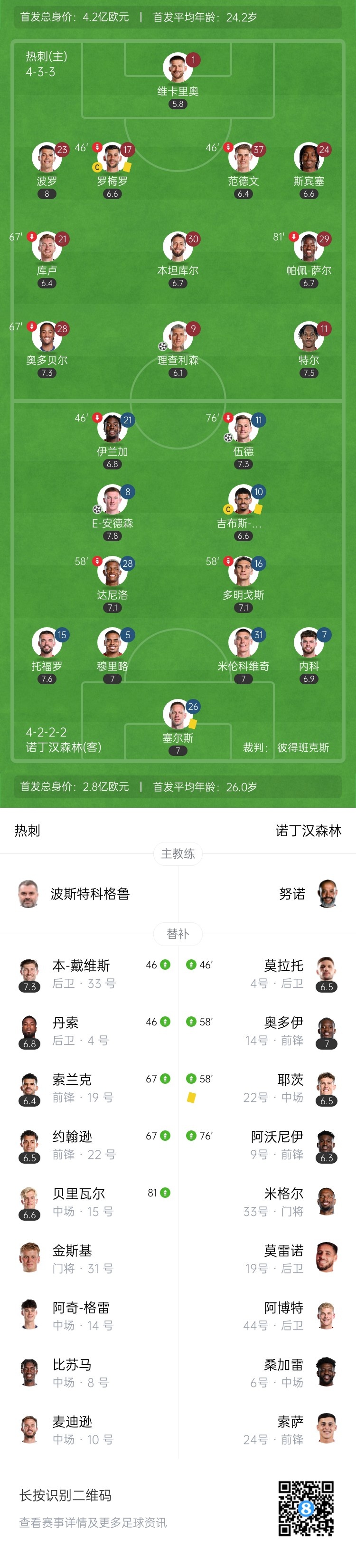 7轮仅1胜!热刺1-2遭森林赛季双杀 森林终结英超2连败&升第3