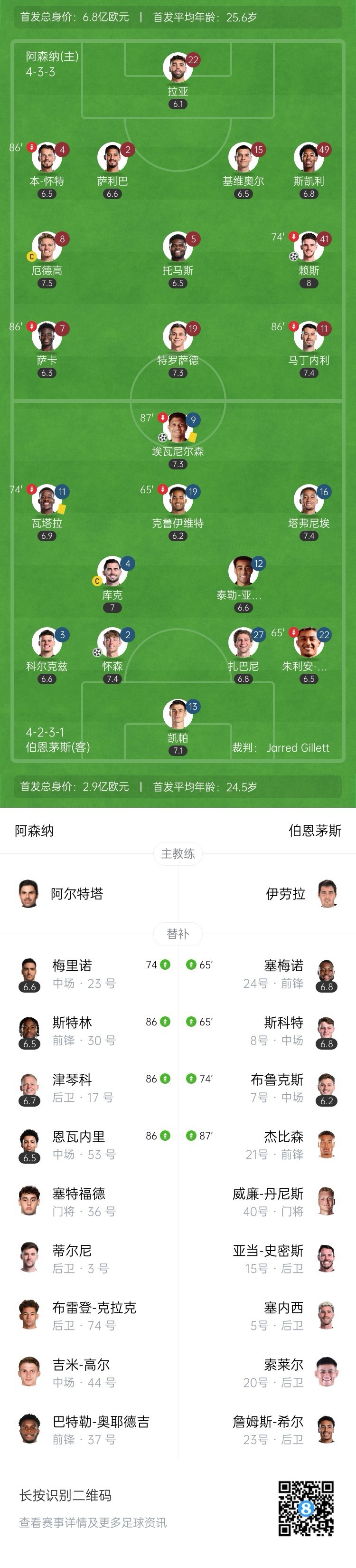 第35分钟,厄德高前场带球向前趟了两步,跑动中送出直塞,赖斯前插到禁区内得球后,晃开出击的门将推射空门得手,阿森纳1-0领先!↓