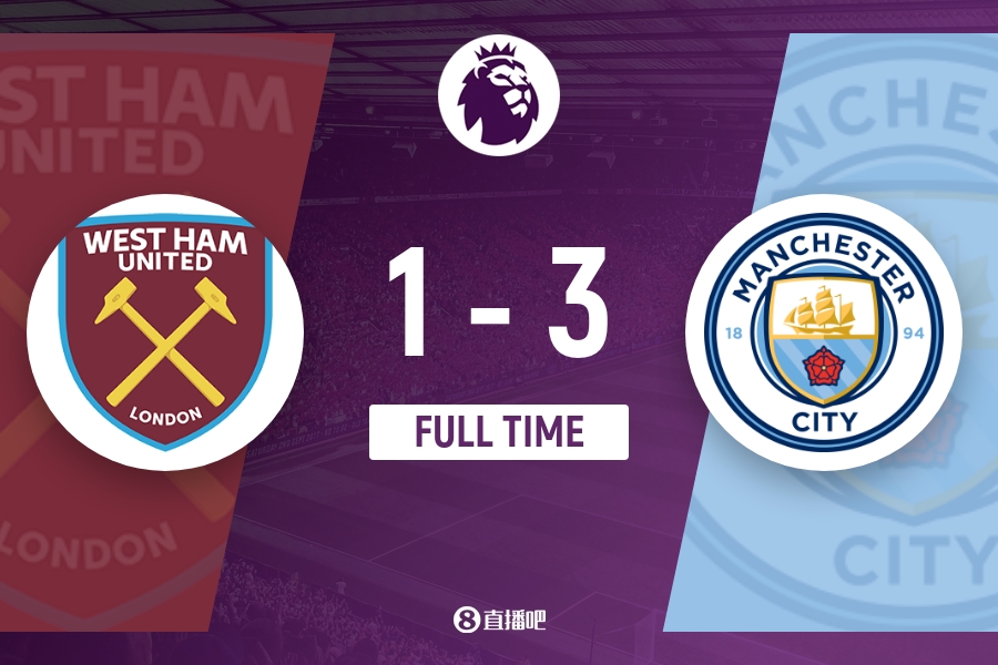 下半场补时6分钟,西汉姆1-3曼城。