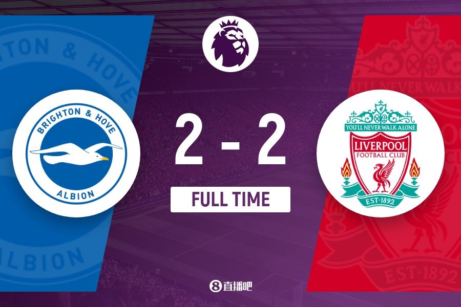 第78分钟,马奇开出左路定位球,邓克门前大腿撞射破门,布莱顿2-2利物浦。↓