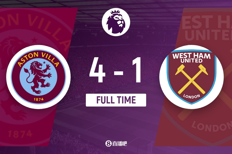 最终全场比赛结束,维拉4-1击败西汉姆。