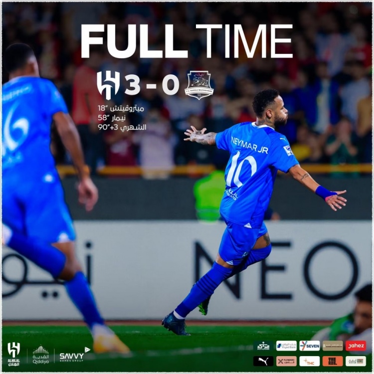 利雅得新月首发:21-奥韦斯、2-布莱克(90+1'14-哈姆丹)、3-库利巴利、5-布莱希、12-沙赫拉尼(81'87-坦巴蒂)、28-穆罕默德-卡努、7-法拉吉、77-马尔科姆(55'16-纳塞尔-多萨里)、96-迈克尔(81'66-阿卜杜勒哈米德)、10-内马尔、9-米特洛维奇(90+1'11-谢赫里)