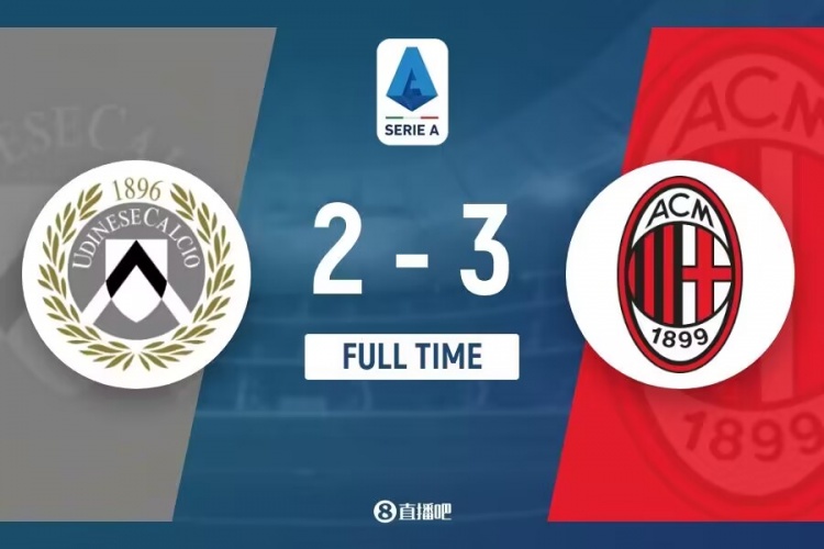 下半场补时6分钟。最终全场比赛结束,米兰3-2乌迪内斯。