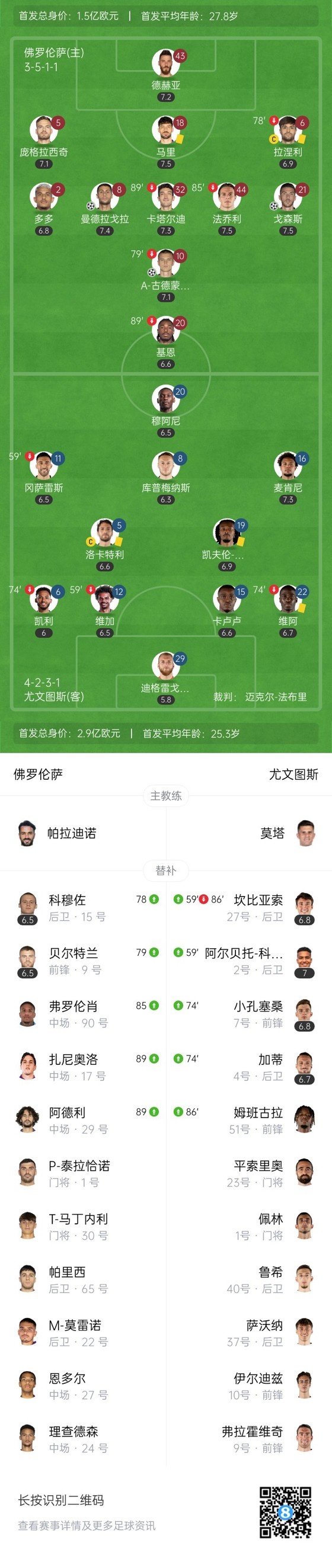 下半场补时2分钟,佛罗伦萨3-0尤文。