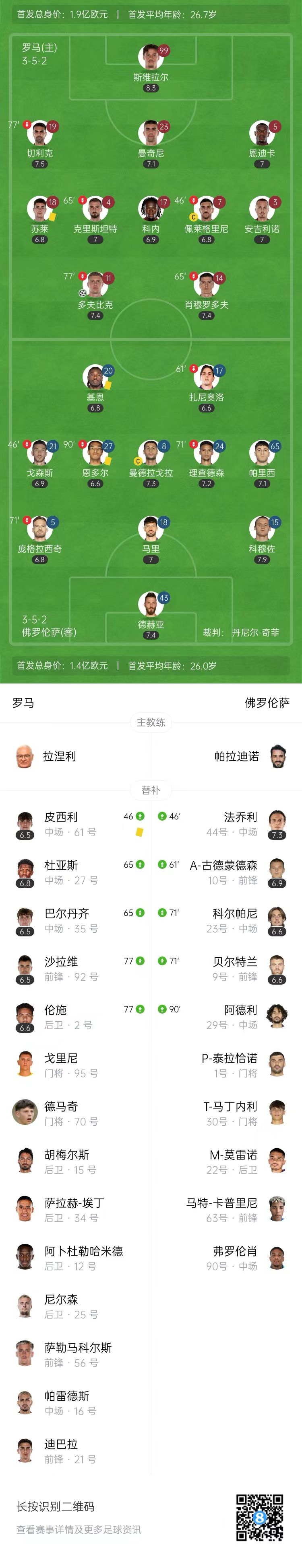 拉涅利带队19轮不败!罗马1-0佛罗伦萨先赛升第四 多夫比克制胜