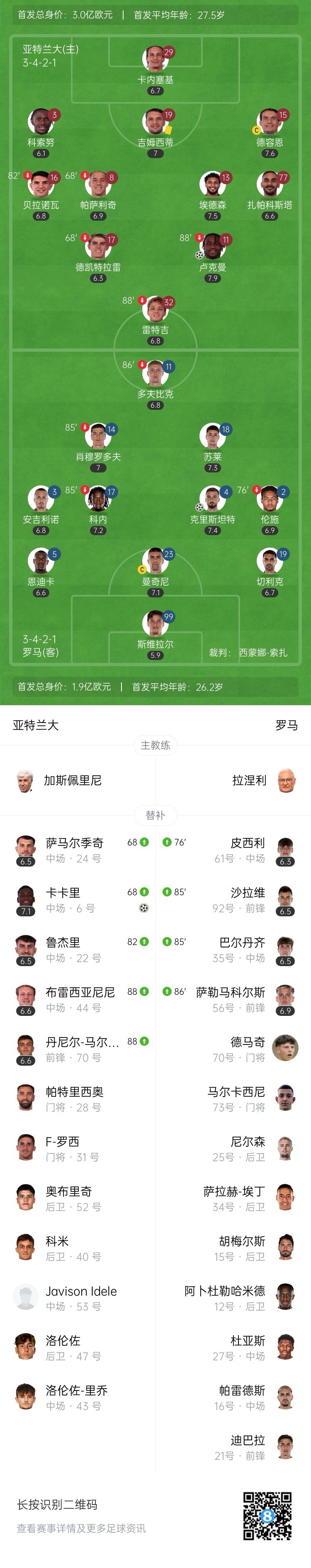 第76分钟,卢克曼前场左路低平球横传到禁区内,球被对方捅出来,卡卡里禁区前沿迎球抽射破门,VAR确认进球有效,亚特兰大再次领先,2-1!↓