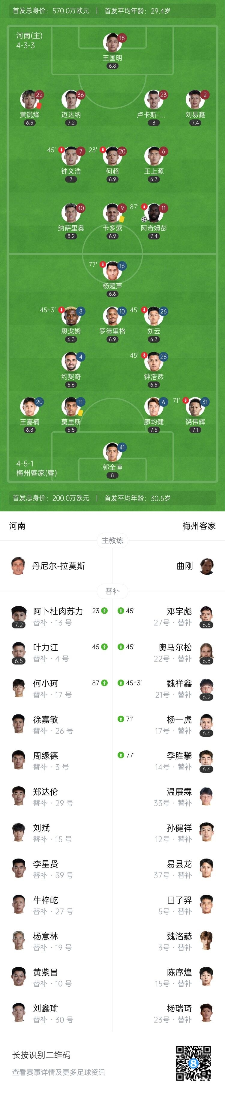 皆多轮不胜!10人河南1-1梅州 黄锐锋红牌阿奇姆彭破门莫里斯绝平