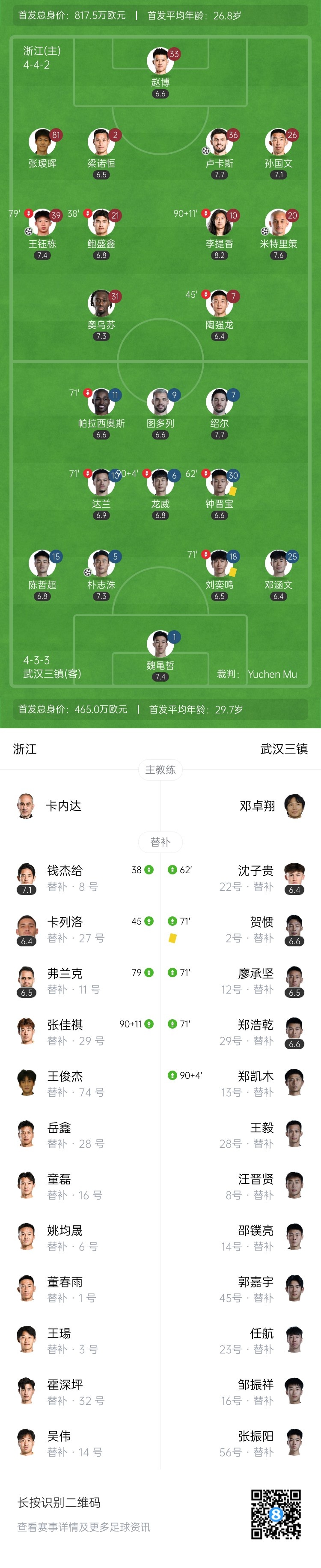 读秒绝杀!浙江3-2武汉三镇 米特里策制胜王钰栋赛季第11球&伤退