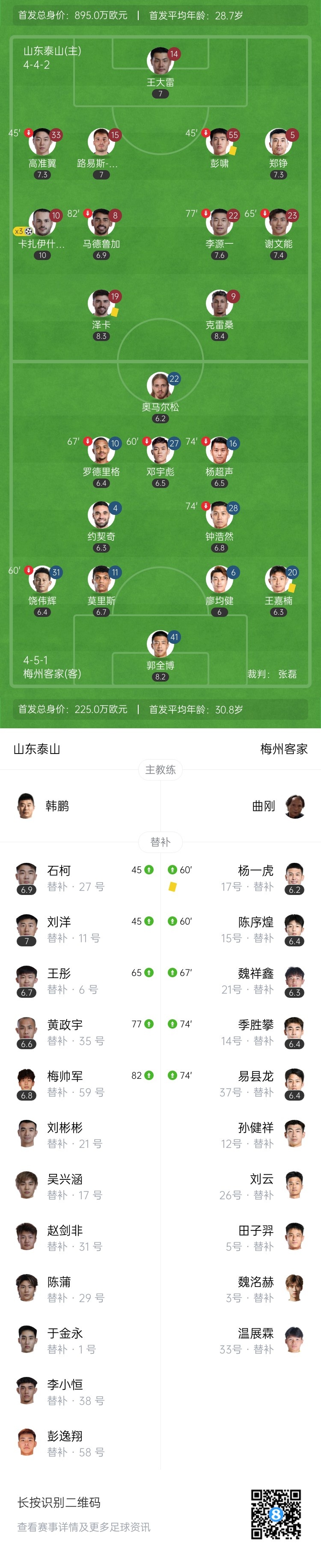 双杀!泰山3-0梅州近3轮首胜 卡扎戴帽泽卡下场停赛 梅州10轮8负
