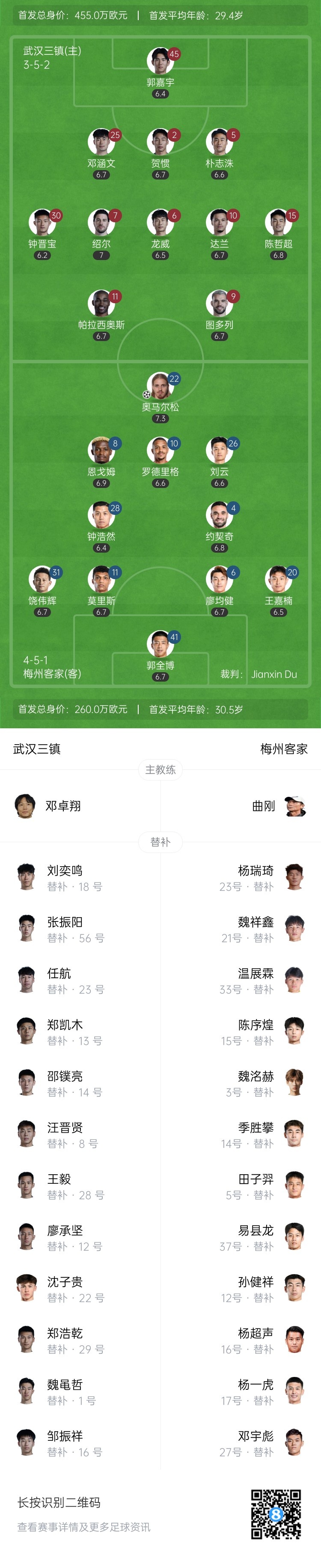 8月10日讯 北京时间20:00,中超第20轮武汉三镇vs梅州客家,比赛在武汉体育中心体育场打响!上半场,帕拉西奥斯进球被判无效;奥马尔松帮助梅州客家客场取得领先!下半场,绍尔任意球世界波扳平比分;恩戈姆禁区内抽射帮助梅州客家再次领先!最终,梅州客家2-1客胜武汉三镇,近12轮首胜!武汉三镇遭遇6轮不胜!