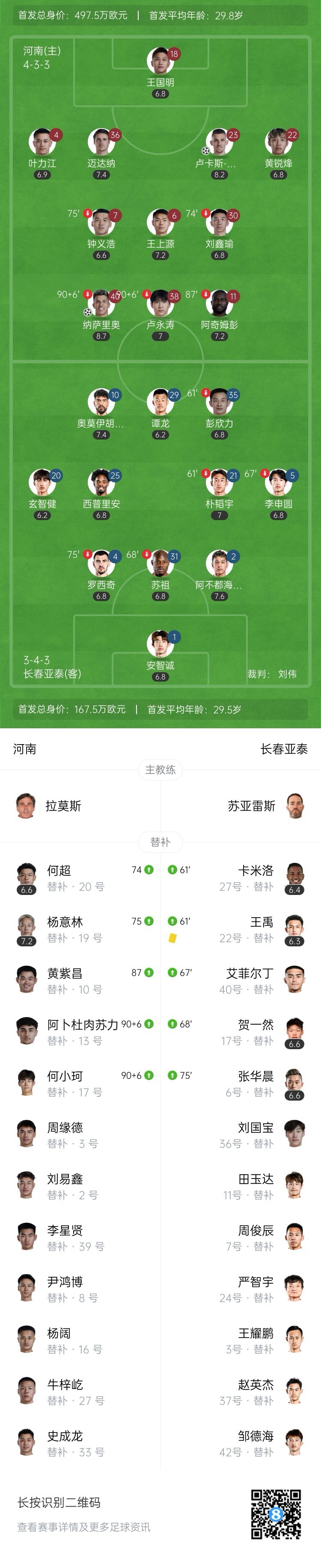 半场战罢,河南队暂0-0亚泰。