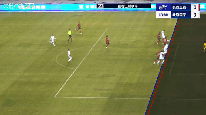 伤停补时5分钟。全场比赛结束,长春亚泰0-4北京国安。