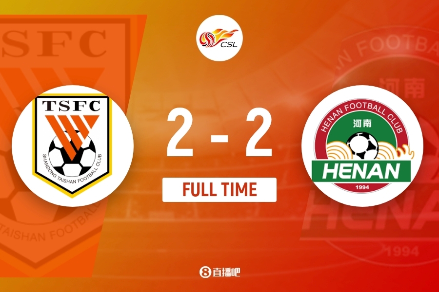 全场比赛结束,最终山东泰山2-2河南。