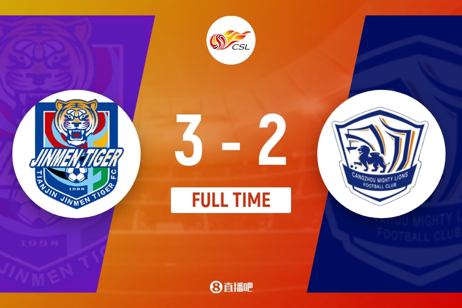 全场比赛结束,天津津门虎3-2沧州雄狮。