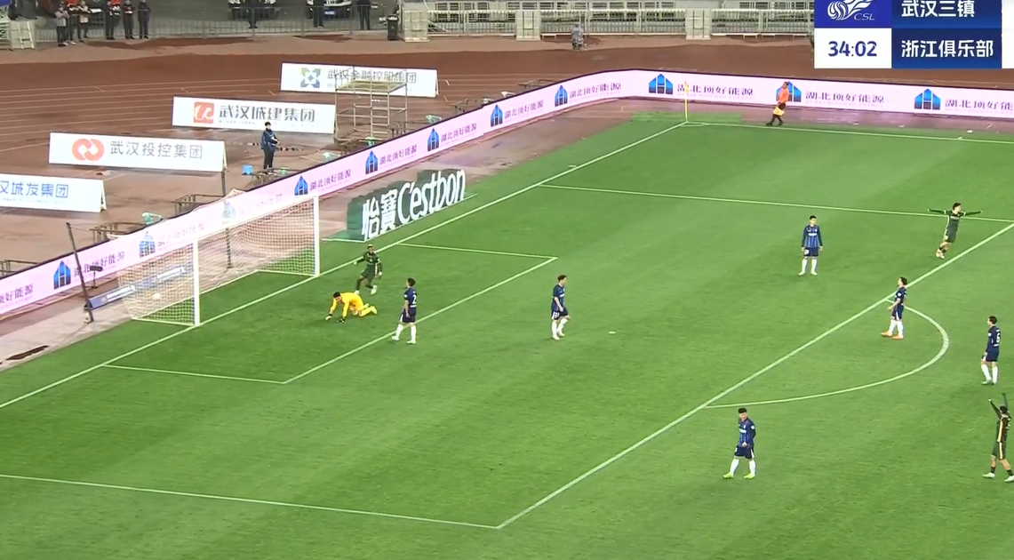 第25分钟,中场位置李提香送出挑传到禁区,王钰栋插上停球内切,慌乱之中任航抢先一脚解围不慎自摆乌龙,VAR长时间介入确定王钰栋接球瞬间是否越位,最终主裁判定进球有效,浙江队2-0领先↓