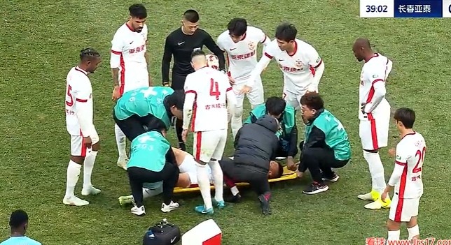 第38分钟,谭龙拼抢中受伤倒地被担架抬出场外,同时李申圆受伤坚持不住回更衣室。↓