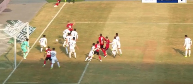 第62分钟,廖承坚突施冷箭,苏祖将球挡出底线。↓