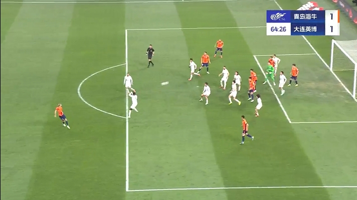 全场比赛结束,青岛海牛主场1-1大连英博。