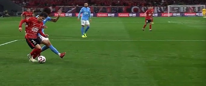 第10分钟,费利佩点球点附近摆渡给到胡荷韬近距离打门打在横梁上弹出。↓