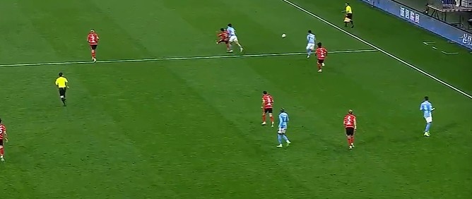 下半场易边再战,第52分钟,杨明洋左路弧顶突施冷箭远射被隋维杰扑出。↓