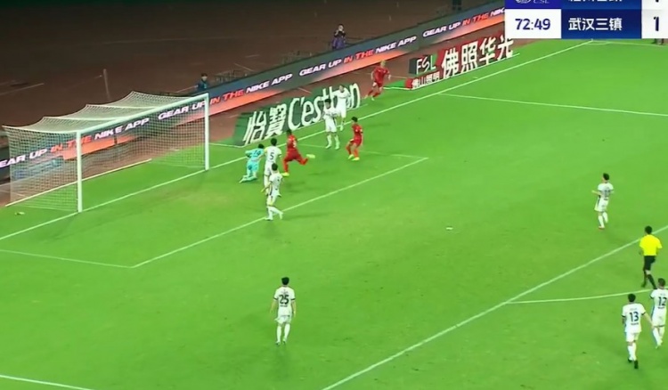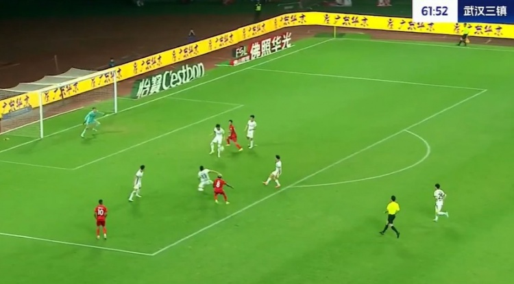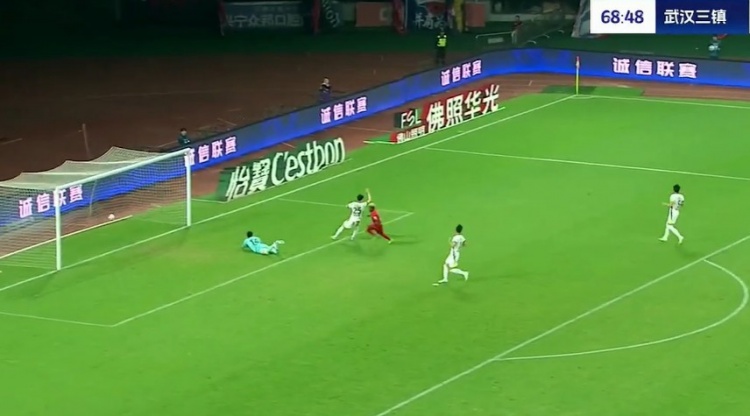 第31分钟,罗德里格凭借个人能力摆脱防守,随后的打门被三镇后防线合力防下。↓