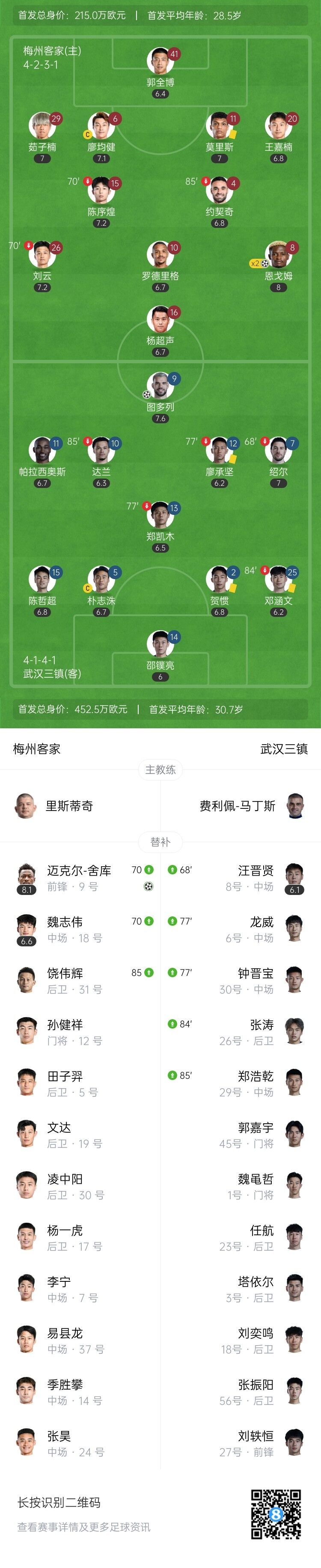 第69分钟,恩戈姆反越位成功抽射破门,边裁第一时间举旗示意越位,但VAR介入后主裁最终判定没有越位进球有效!1-1!梅州客家扳平了比分!↓